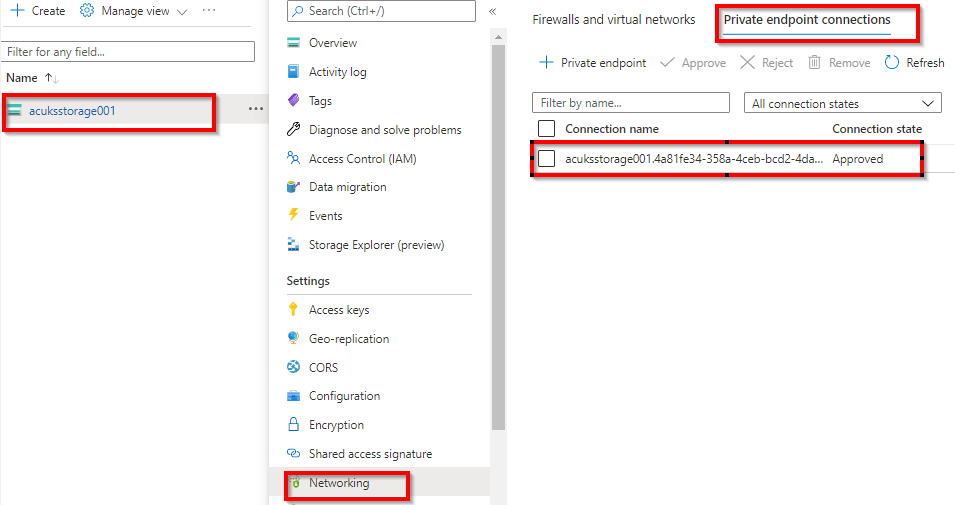 We can now go to the storage account, networking and Private endpoint to ensure the Private Endpoint has been created.
