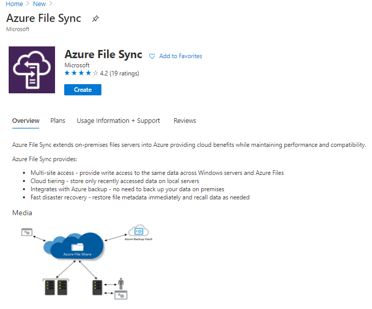 First we need to create a Storage Sync Service, which in itself is a little strange as you need to go to the marketplace and its called Azure File Sync: